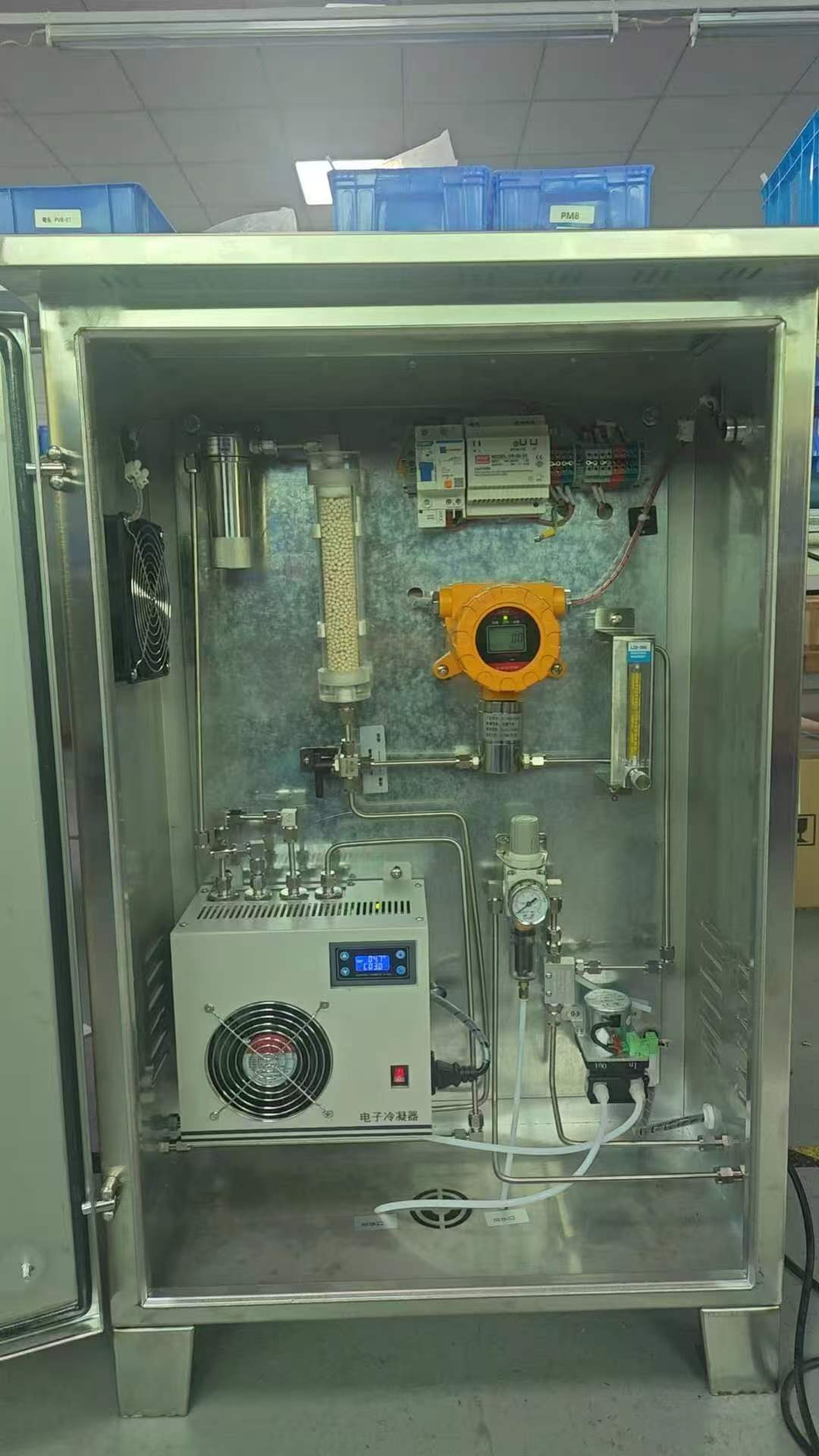 帶預(yù)處理耐高溫型檢測儀主要應(yīng)用于特殊設(shè)備的氣體分析,主要原理是將現(xiàn)場的煙氣或高溫高濕度的被測氣體采樣過來進(jìn)行降溫、除濕、粉塵過濾、過濾焦油處理,并將被測氣體的溫度和濕度恒定在一定范圍,使氣體分析儀能夠正常檢測濃度,整個過程為自動化處理,不需人為干預(yù)處理。帶氣體預(yù)處理的檢測系統(tǒng)用于被測氣體粉塵不多,高溫度和高濕度的場合,對于粉塵和焦油量較多的場合需多配焦油處理系統(tǒng)。